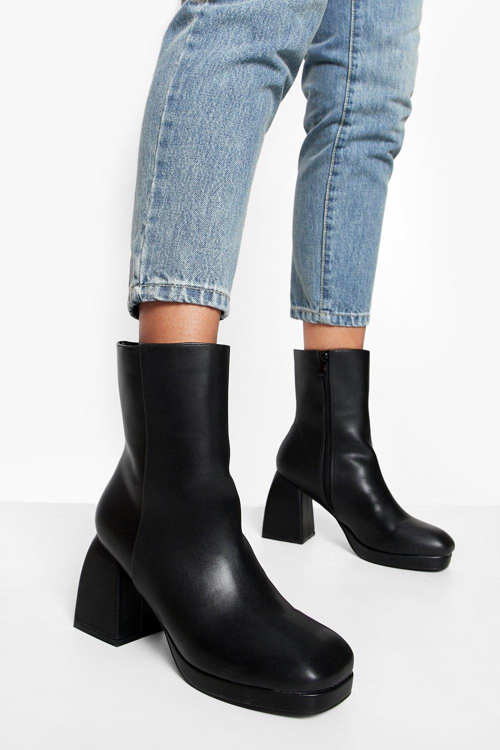 Wide Width Chunky Heeled Boot | boohoo