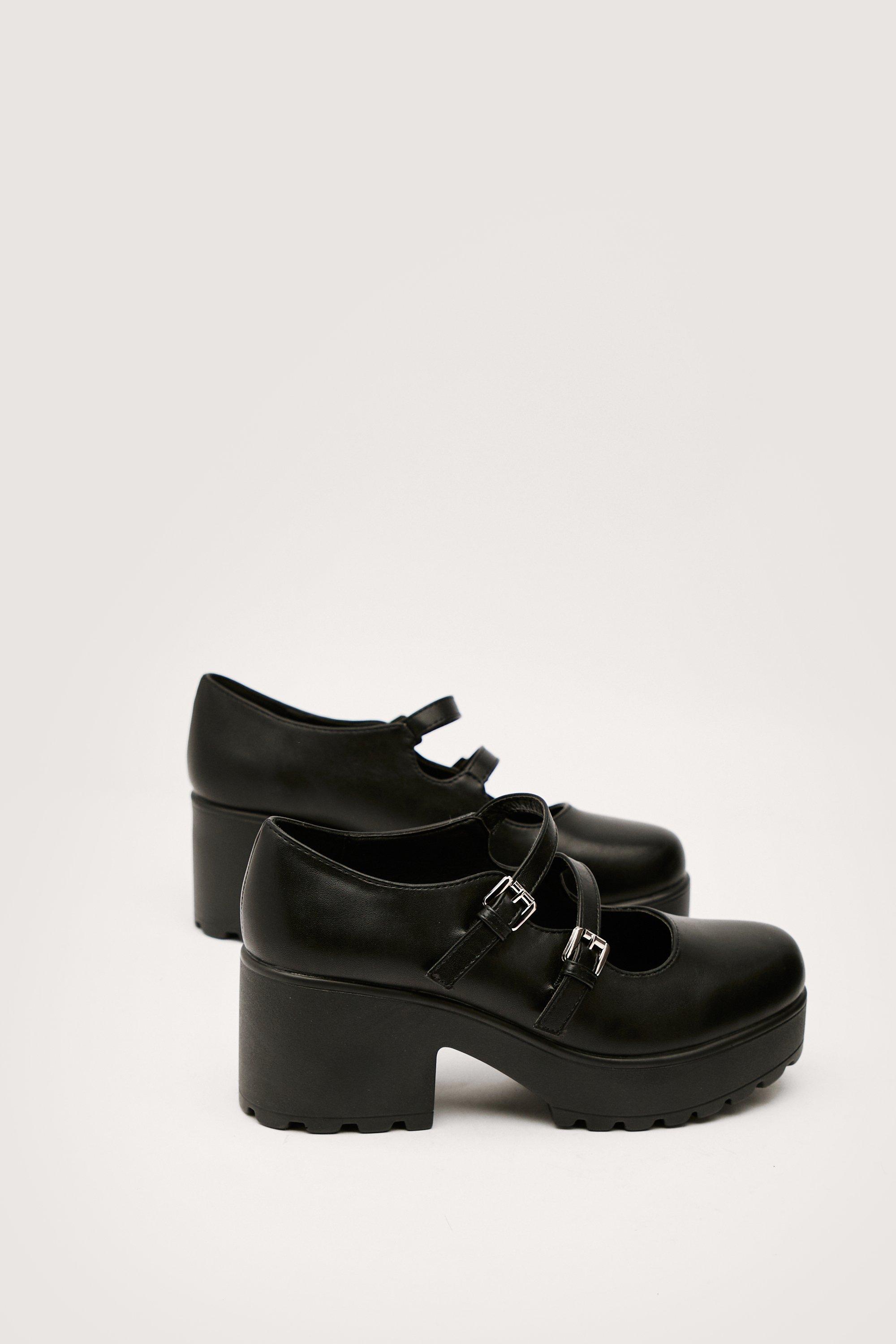 Nasty Gal Womens Faux Leather Double Strap Mary Janes - Black