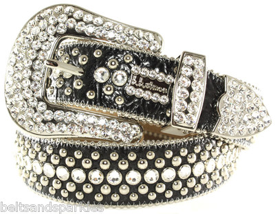 BB Simon Swarovski Crystal Black Leather Belt 32 L New | eBay