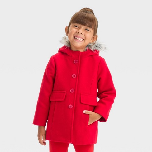 Toddler Girls' Hooded Wool Coat - Cat u0026 Jack™ Red 5t : Target