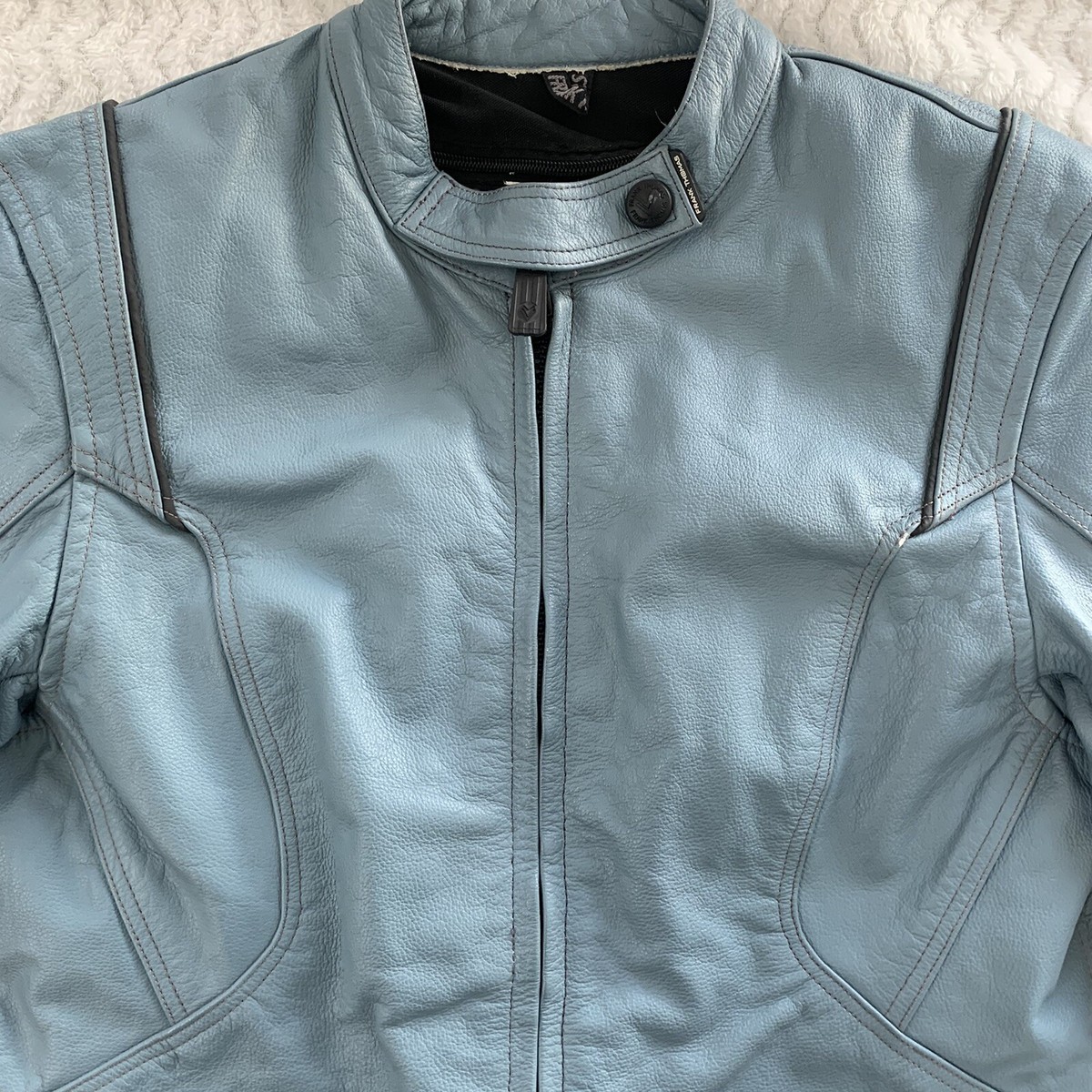 Frank Thomas Lady Rider Biker Blue Leather Motorcycle Jacket Women's Eur Sz 42 | eBay