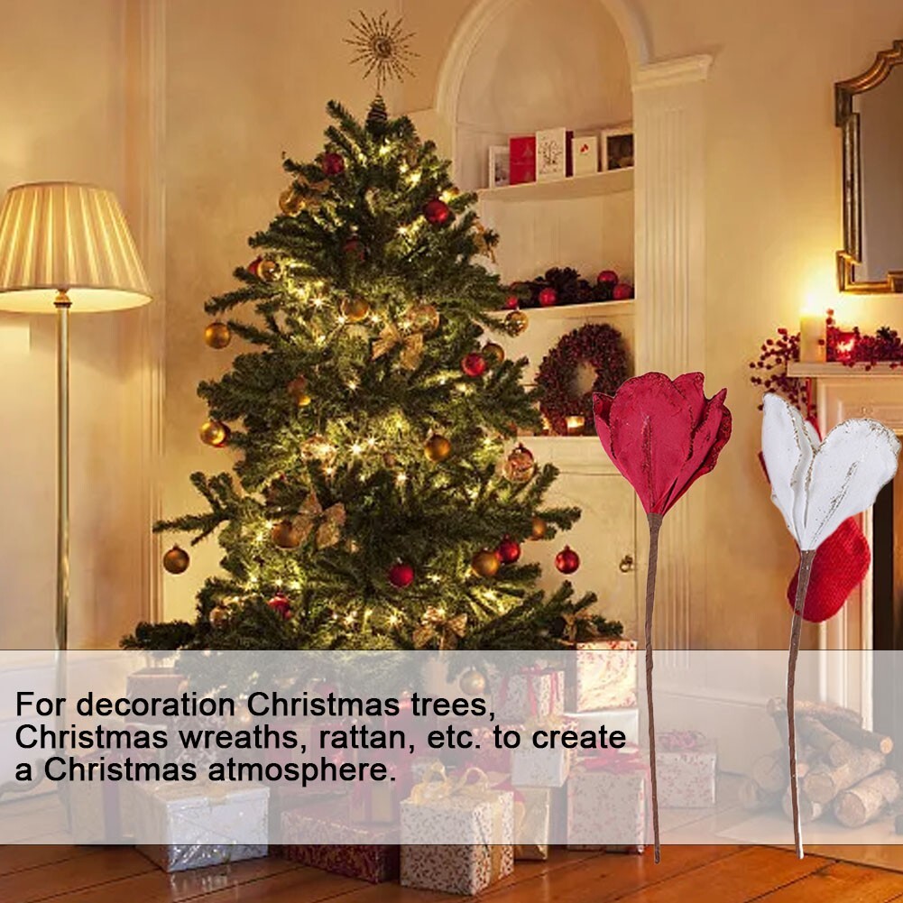 1PC 24cm/9.45in Gold Glitter Christmas Flower With Stem for Christmas Tree Decoration | SHEIN UK
