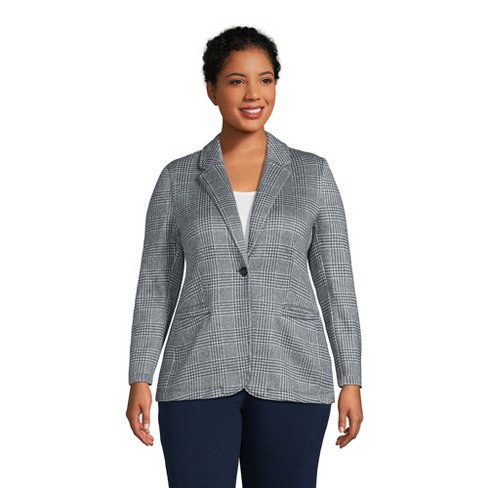 Lands' End Women's Plus Size Sweater Fleece Blazer Jacket - The Blazer - 3x - Warm Graphite Glen Check : Target