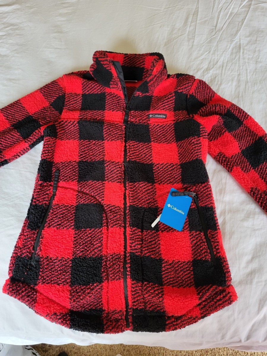 Columbia Womenu0026#039;s Puffy Full Zip Fleece Red White Buffalo Plaid Jacket Sweater | eBay