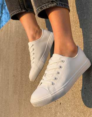 New Look faux leather trainers in white