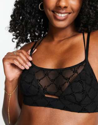 NA-KD lace triangle bralette in black