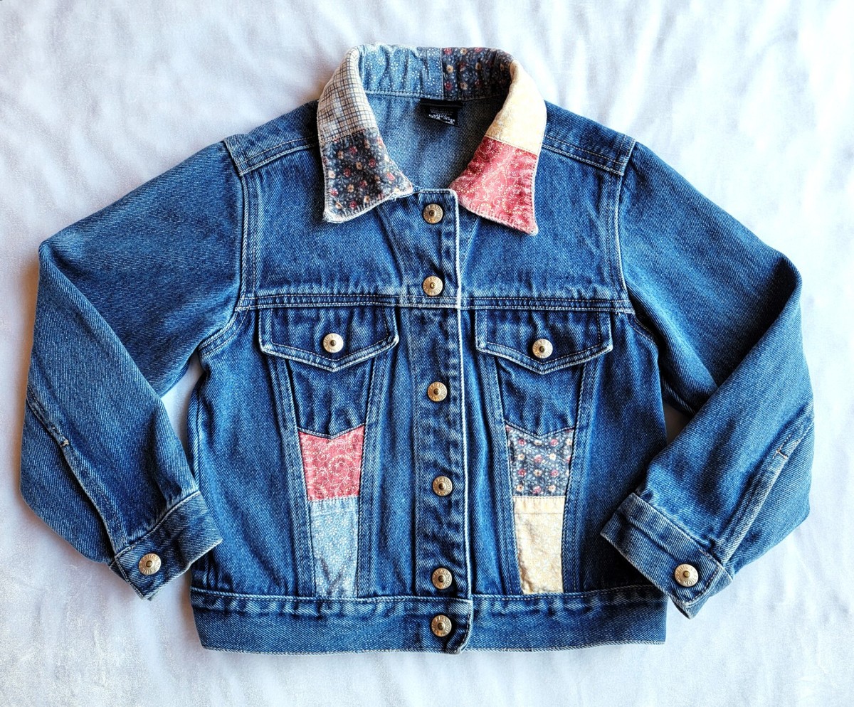 Xhiliration Denim Jean Jacket Girl S Blue Pink Yellow Patchwork School Retro 90s | eBay