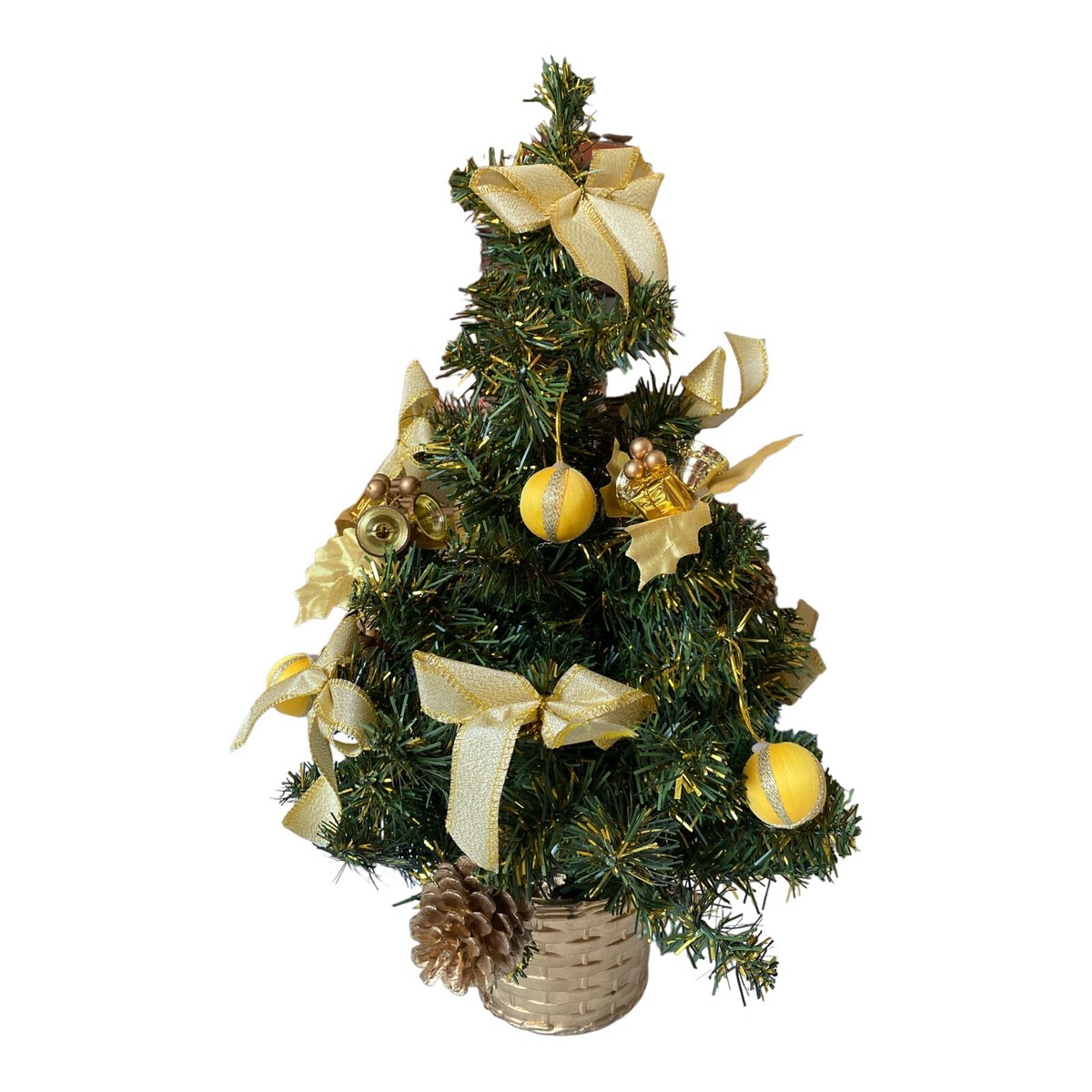 S Vintage Tabletop Christmas Tree Green Decorated Gold Rattan Basket 80's 19.5H | eBay