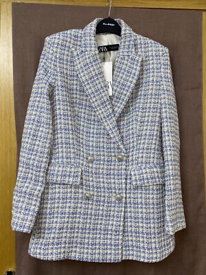 ZARA BLUE WHITE HOUNDSTOOTH GINGHAM CHECK BLAZER JACKET KATE MIDDLETON LARGE L | eBay