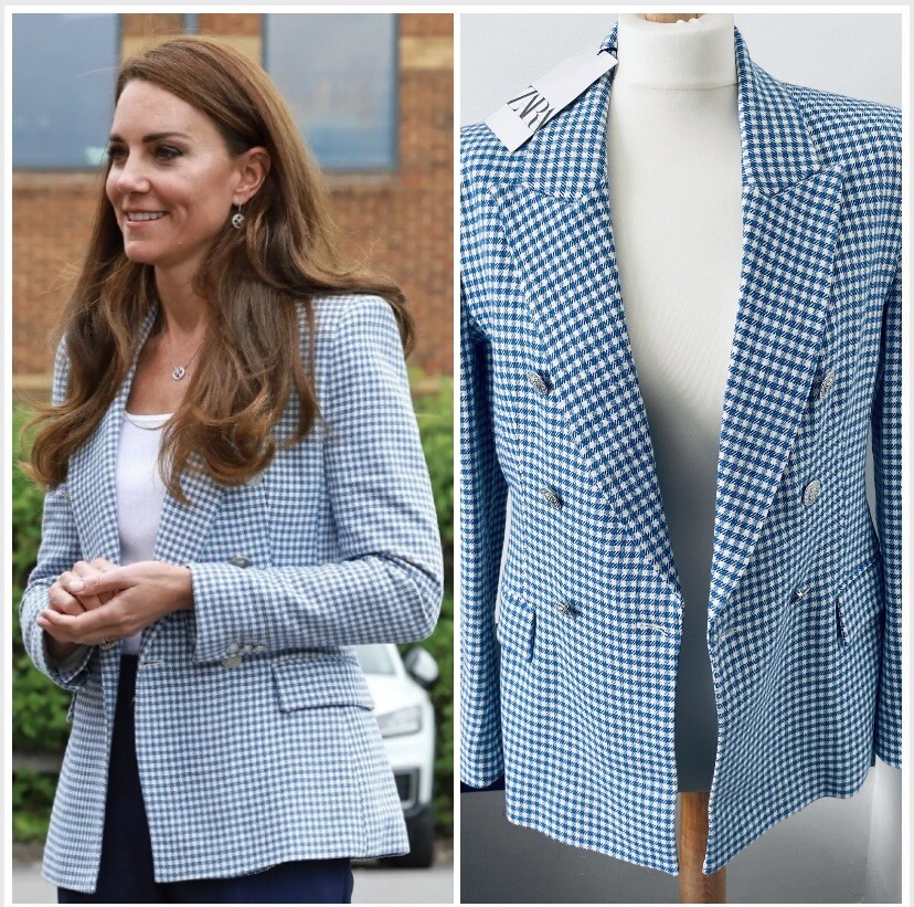 Kate Middleton's Zara Houndstooth Check Blazer in Blue