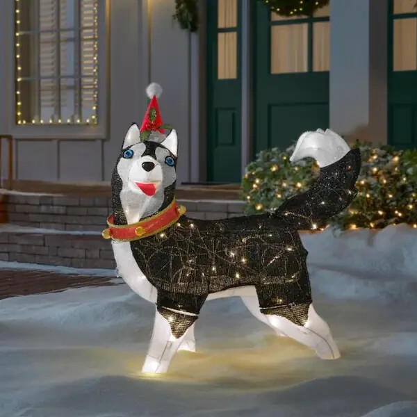42 in. LED Lighted Fuzzy Husky | Creepy christmas, Christmas yard decorations, Outdoor christmas decorations