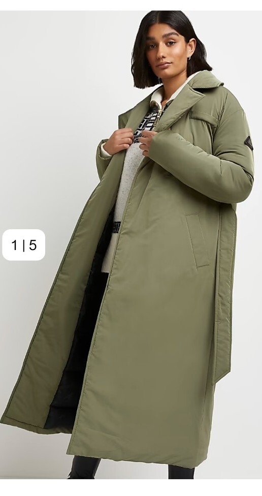 River Island Khaki Green Puffer Trench Jacket Coat size 12, 14, BNWT instagram | eBay