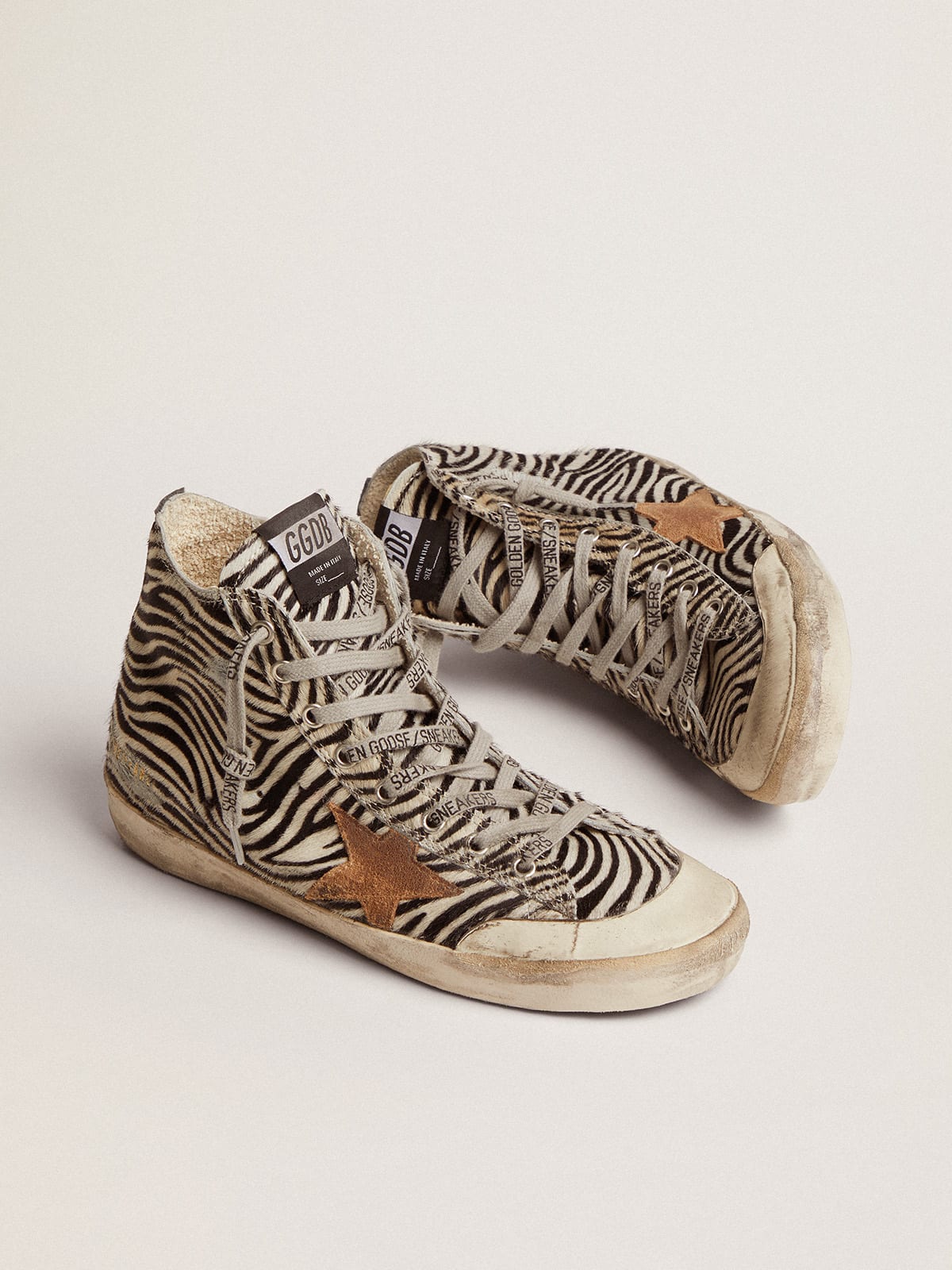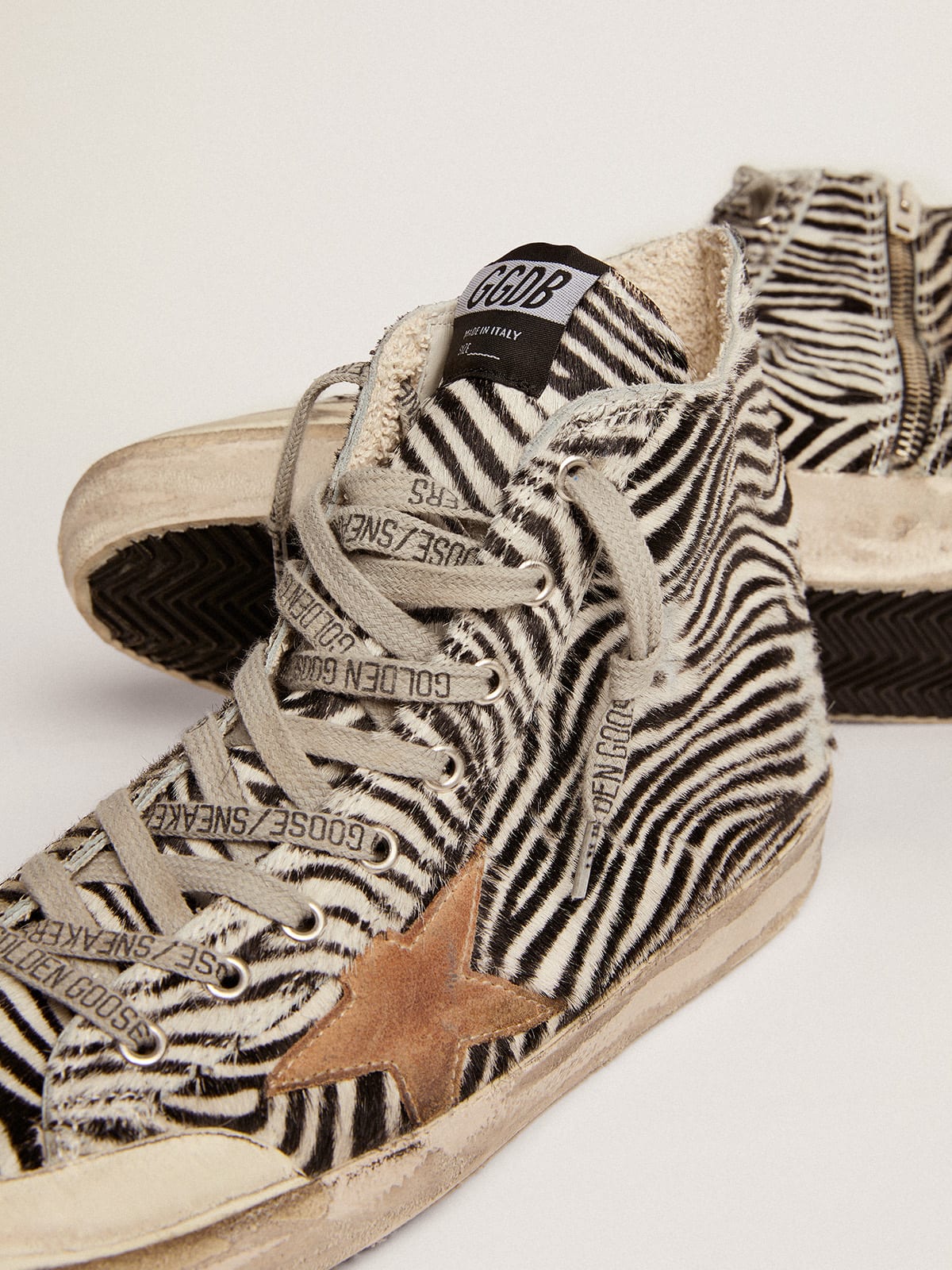 Golden Goose - Francy Penstar LTD Sneakers in Zebra-Print Pony Skin with Tobacco-colored Suede Star and Black Leather Heel Tab, Woman, Size: 35