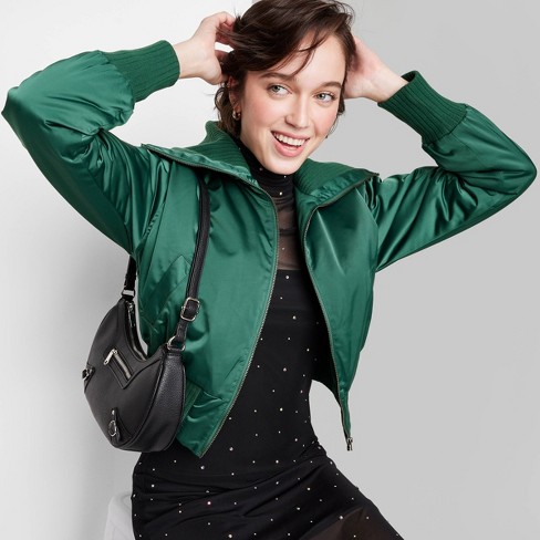 Women's Satin Bomber Jacket - Wild Fable™ Emerald Green Xxs : Target