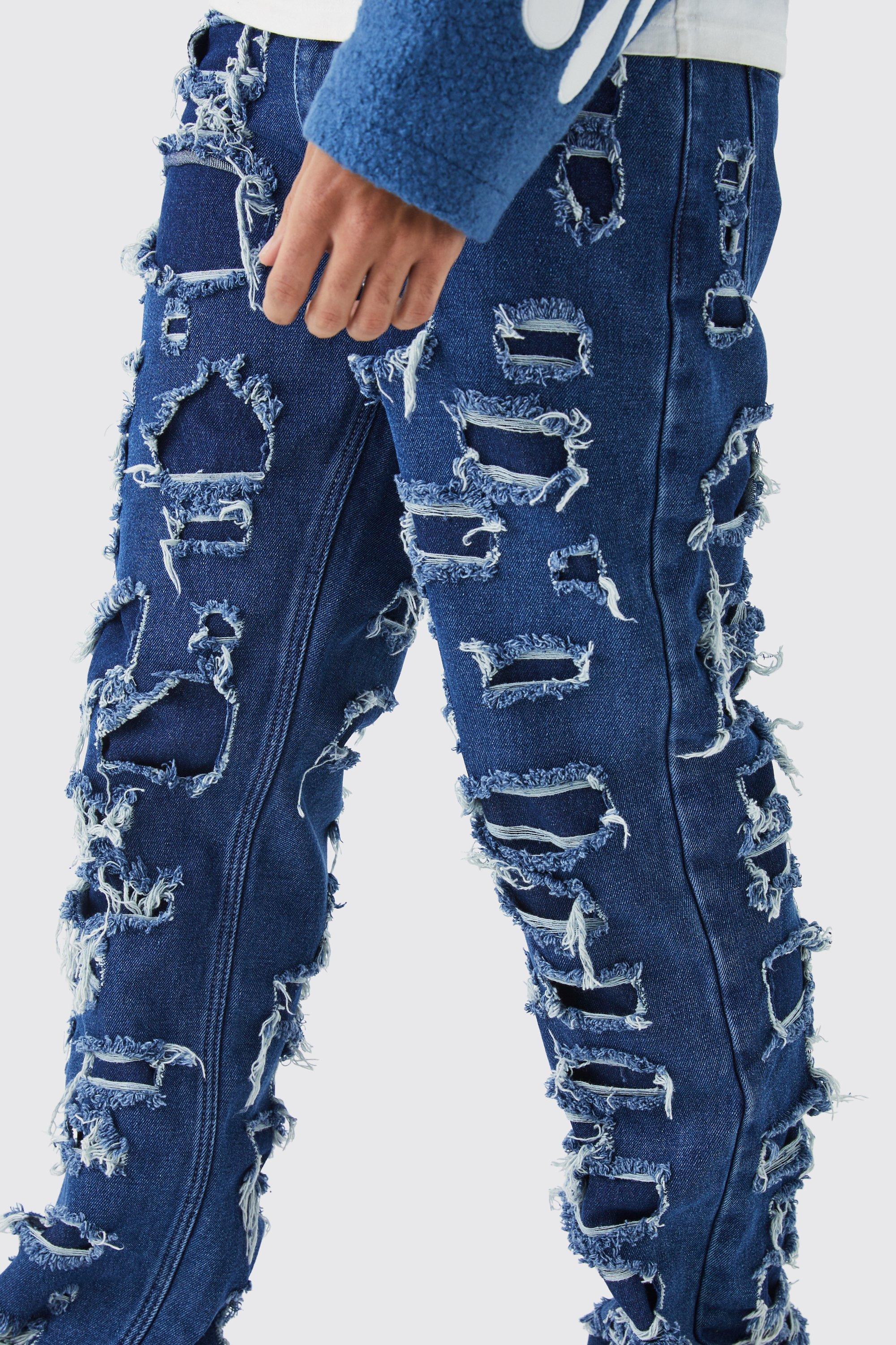 Relaxed Rigid Extreme Ripped Jeans | boohoo