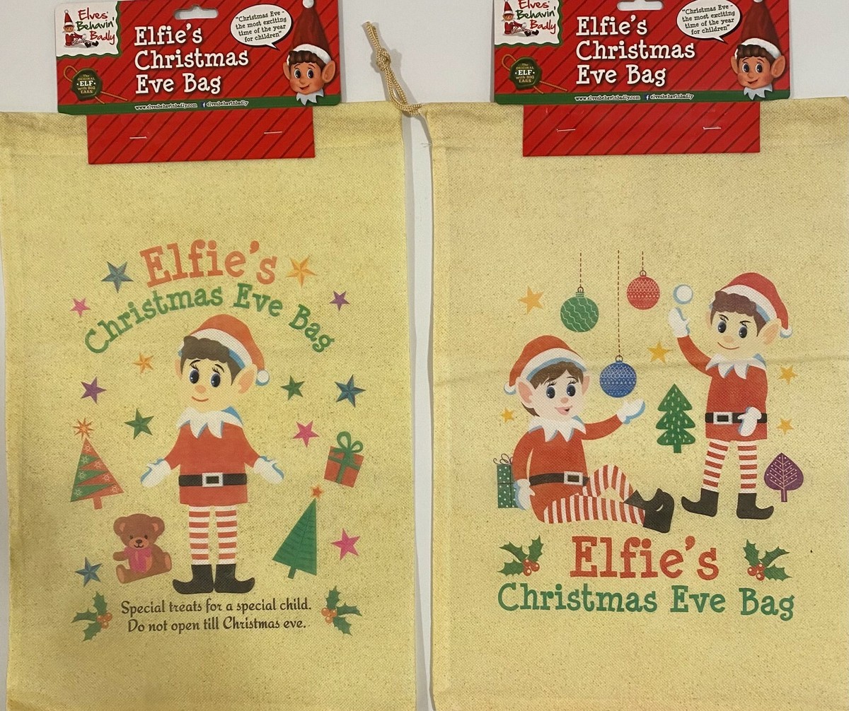 Elves Behaving Badly - Elfie's Fabric Christmas Eve Bag - 43cm x 29cm - Design: 1 Elf : Amazon.co.uk: Everything Else