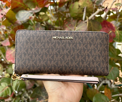 Michael Kors Jet Set Travel Large Continental Wallet Wristlet MK Brown Pink | eBay