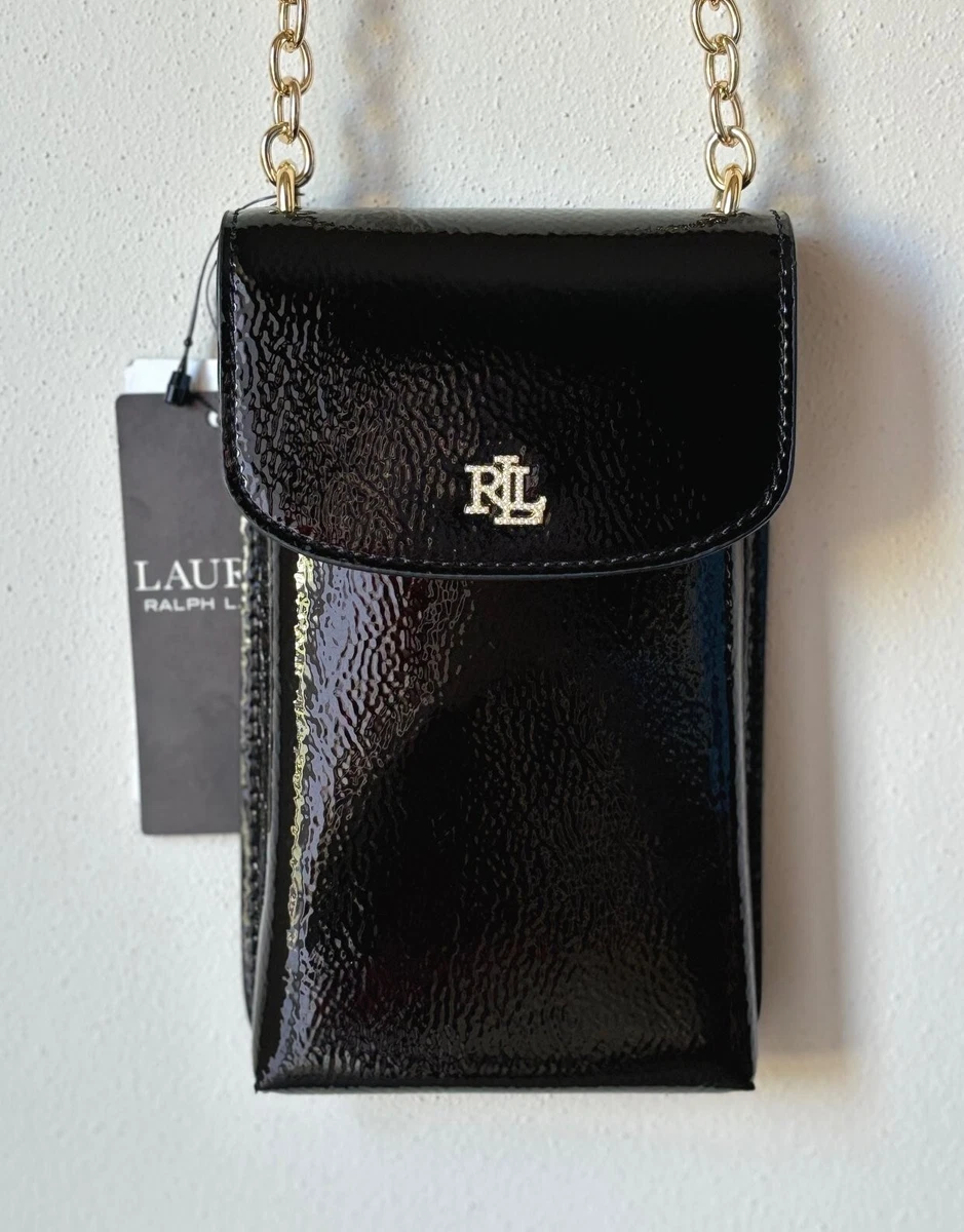 Lauren Ralph Lauren Phone Crossbody Bag Chain Strap - Patent Black w Gold (NWT) | eBay