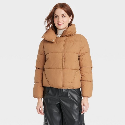 Women's Short Relaxed Puffer Jacket - A New Day™ Brown 4x : Target