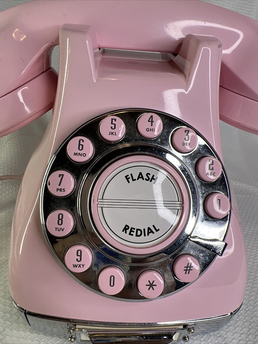 Retro Pink Push Button Telephone Desk Phone Metro with Note drawer Excellent | eBay