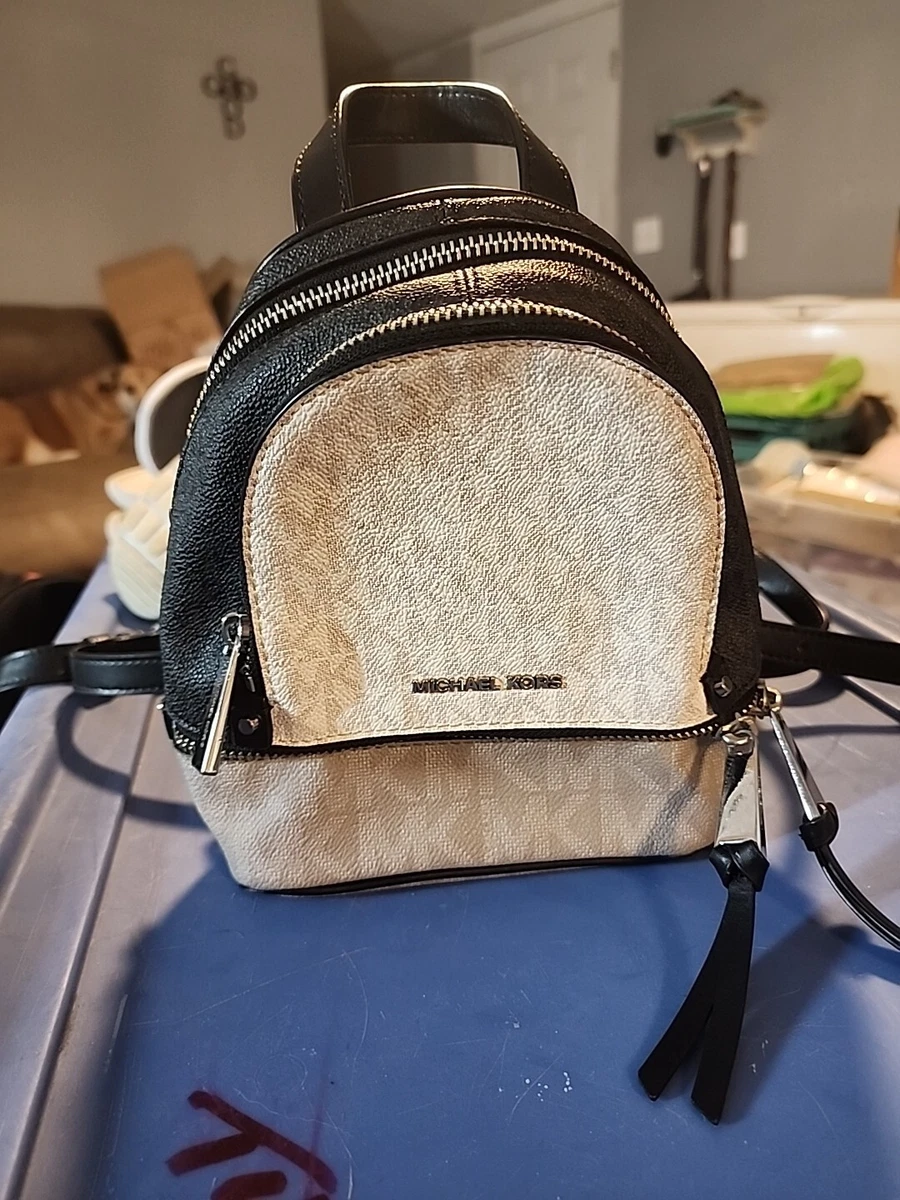 MICHAEL KORS Rhea Mini Color-Block Logo Backpack Black Grey White | eBay
