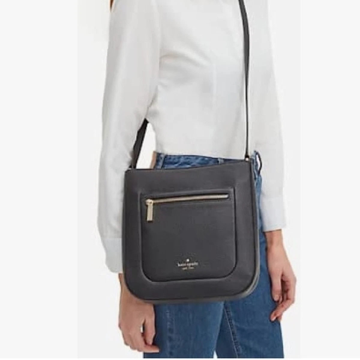 Kate Spade Leila Medium Pebbled Leather Top Zip Crossbody Bag Black Wallet | eBay