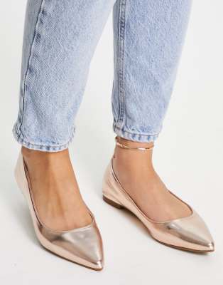 Truffle Collection Wide Fit Pointed Ballet Flat in Rose Gold - ASOS Outlet