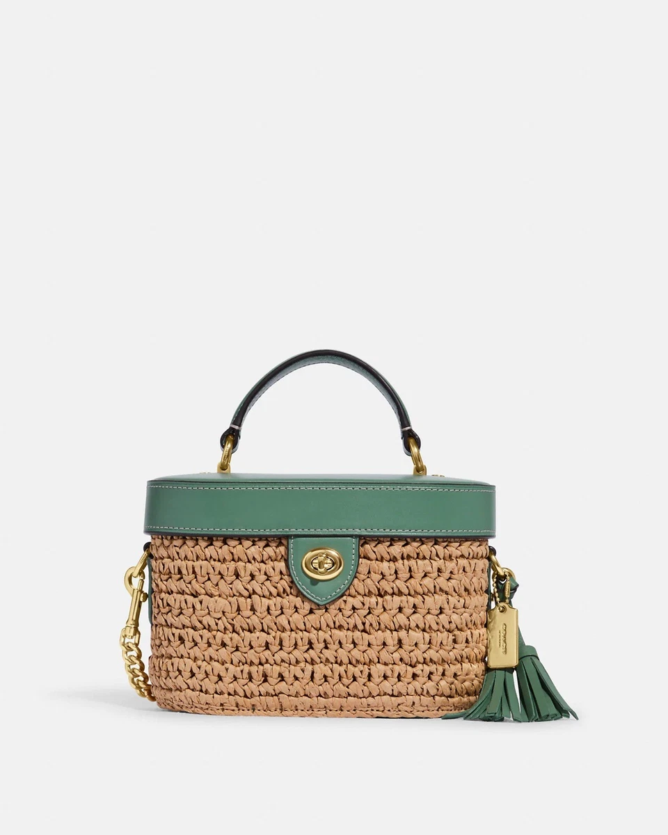 NWT Coach CA155 Key Crossbody Paper straw u0026 smooth leather Natural Washed Green 195031498329 | eBay