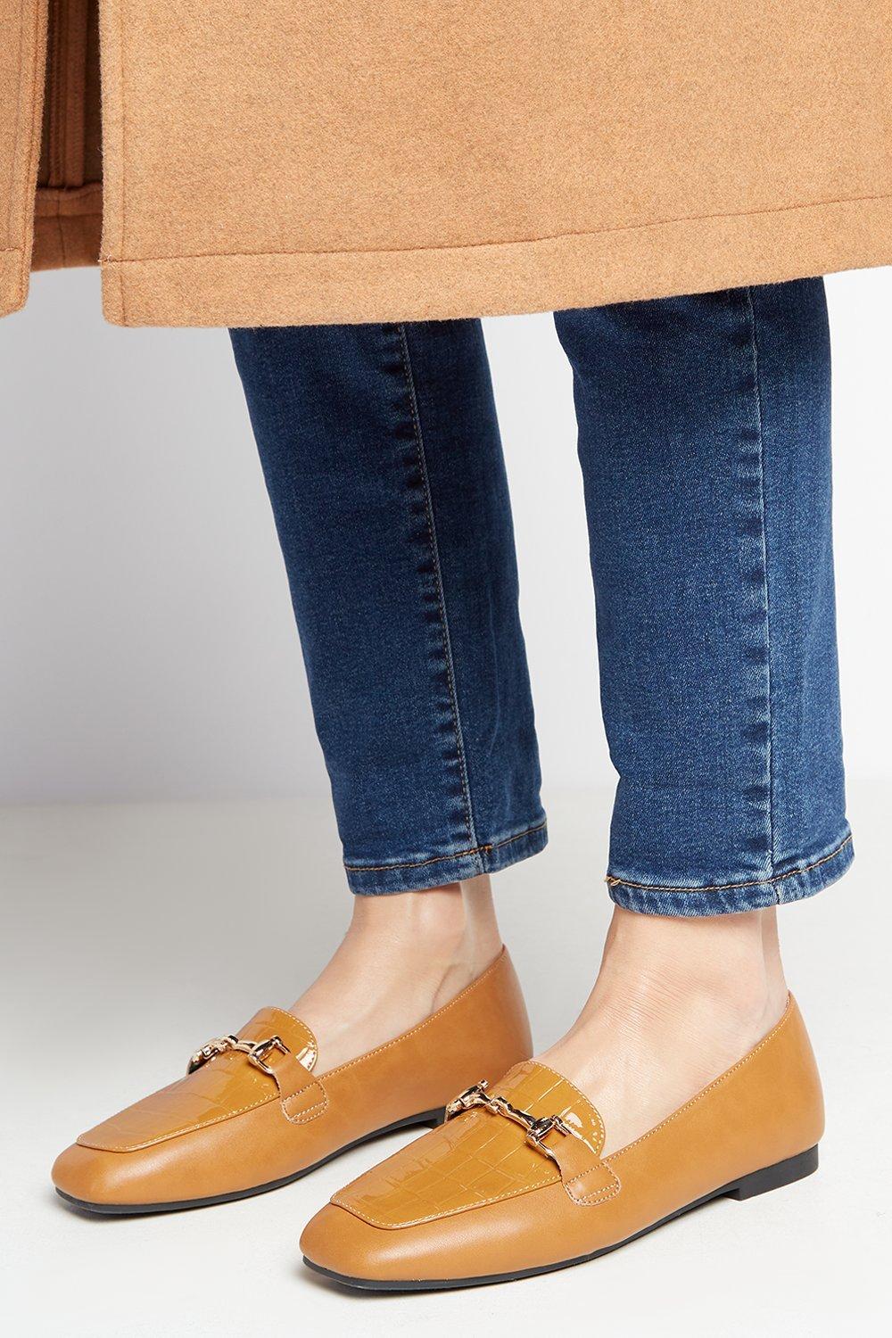 Wide Fit Leather Snaffle Trim Loafers, Tan