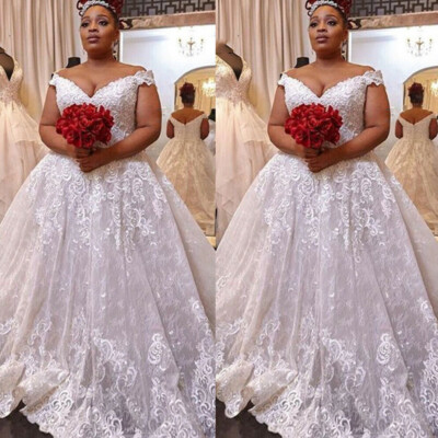 Plus Size Wedding Dresses Off The Shoulder Ball Gown Lace Appliques Bride Gowns | eBay